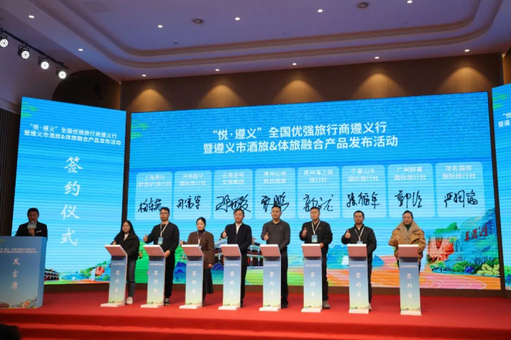 随后,旅行商代表与遵义旅游集团签署酒旅融合航旅合作协议,2026年上半年实现协议航班切位200班次以上,推动“酒旅+航空”跨界融合;在小车小团体旅融合产品签约中,将体育赛事、景区街区与便捷服务融合,进一步提升游客便捷性和体验感。