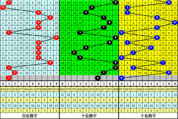百位:上期奖号为:2,该位小 号走势相对较冷,上期上升了1个点位,本期防止该位下降,参考号码1。