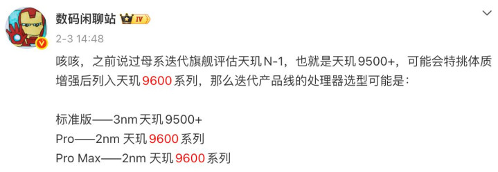 实际上相比小米18的操作,友商的操作也没强到哪里去,因为它们这次可能给标准版用3nm工艺的天玑9500+,这和用天玑9500其实没啥区别,如果发哥的天玑9600系列也和骁龙8E6系列那样分成残血版和满血版,那友商那边的画面估计会更美。